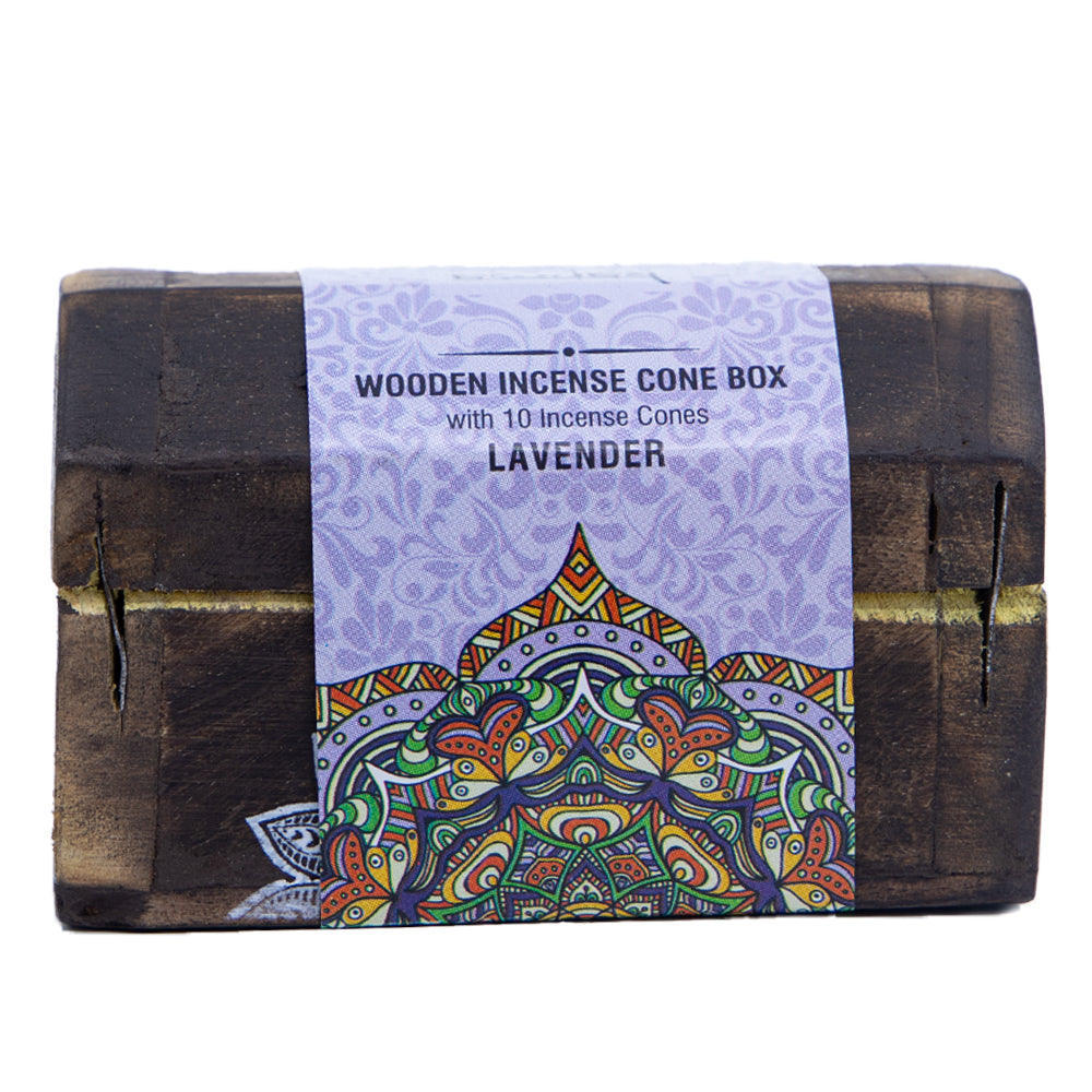 Set Cutie de Lemn cu 10 Conuri Parfumate și Suport, Lavander - Karma Scents